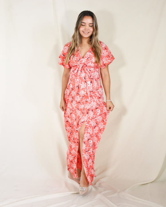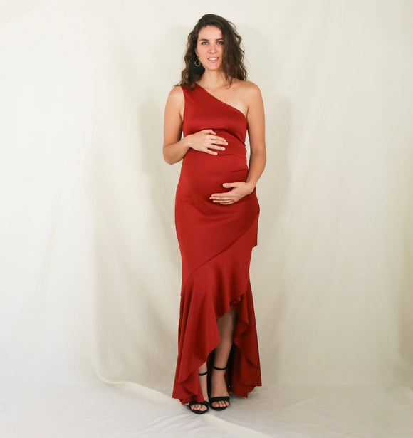 Vestido Xiomara de maternidad y lactancia rojo corrugado