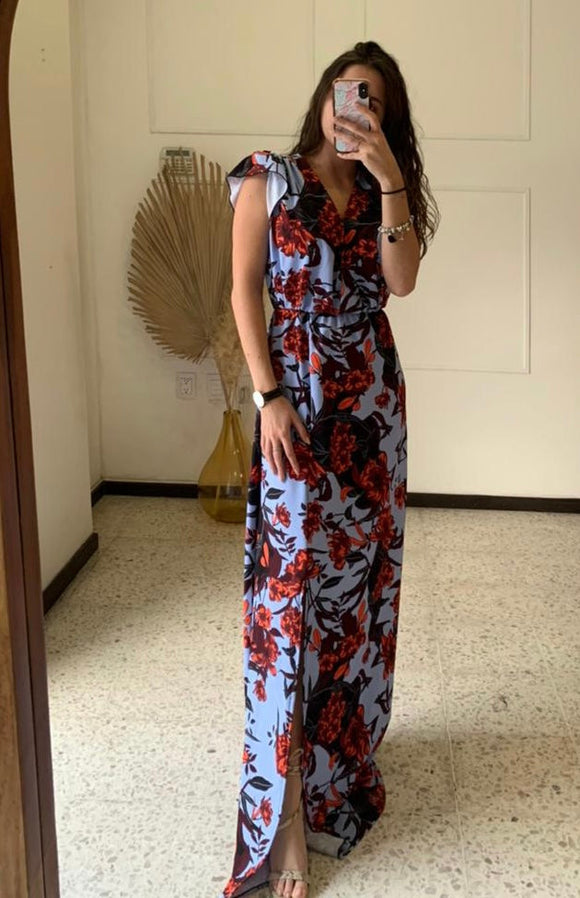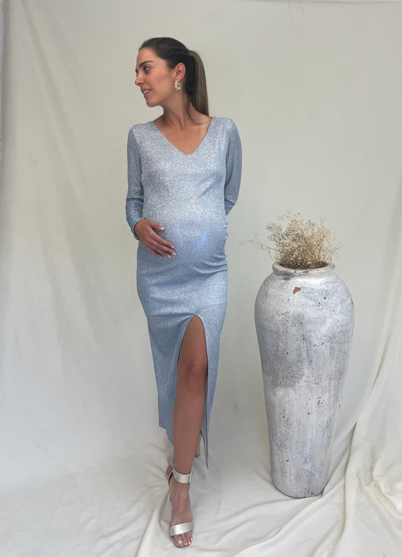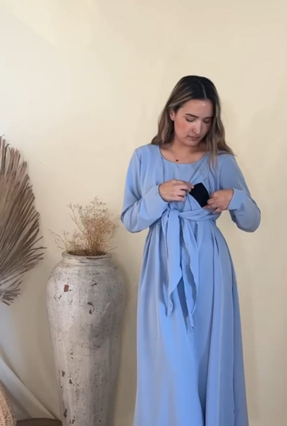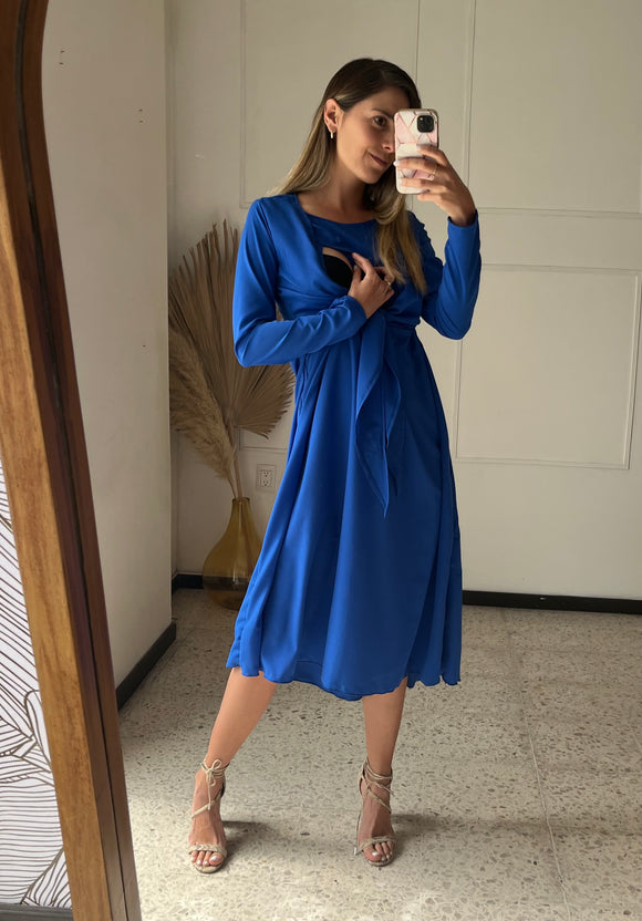 Vestido Xiomara de maternidad y lactancia azul corrugado