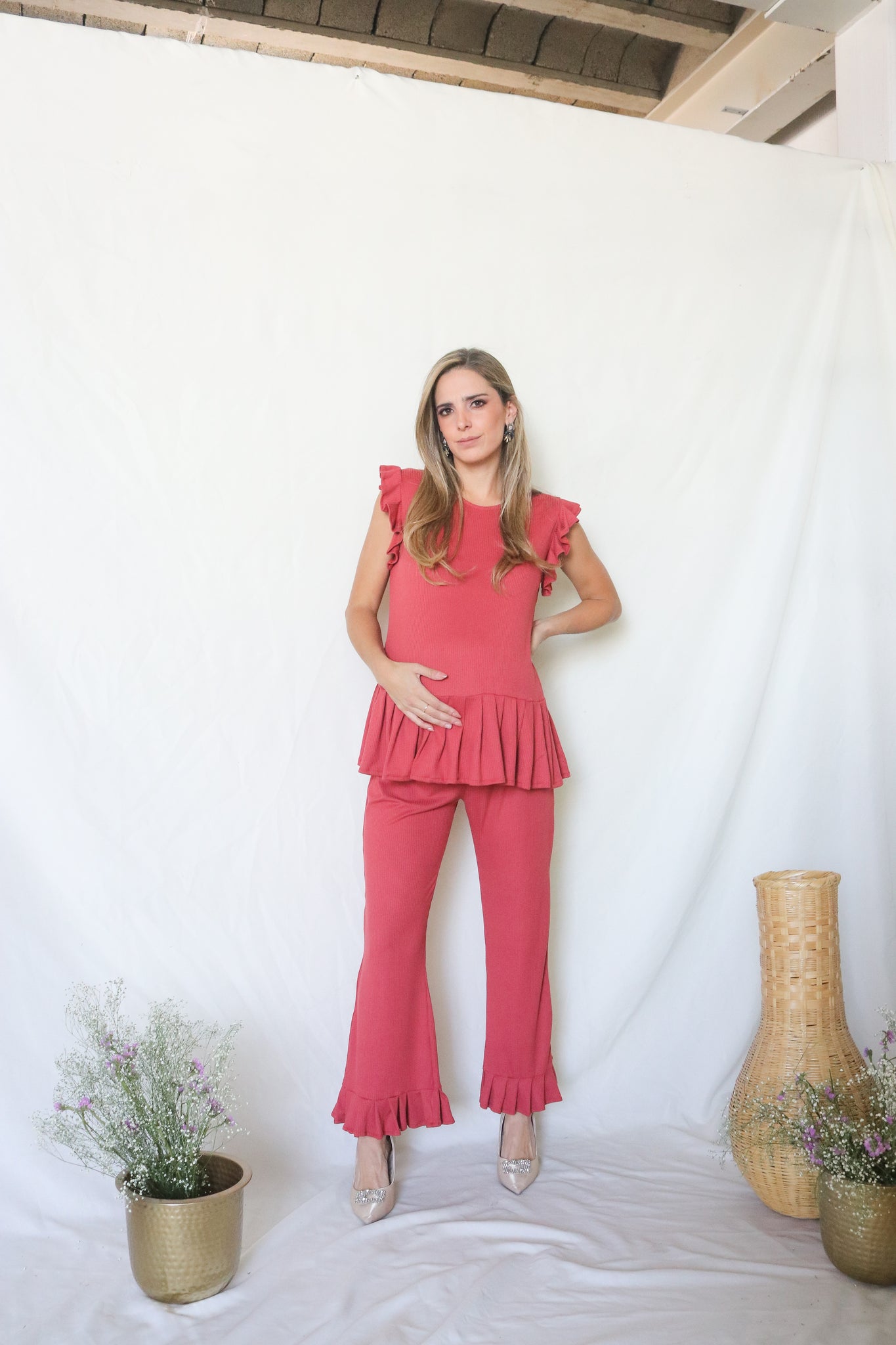 Conjunto de maternidad Imelda, rosa quemado rayitas