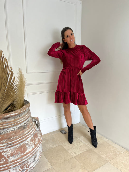 Vestido de lactancia, vino terciopelo rayas Gaby