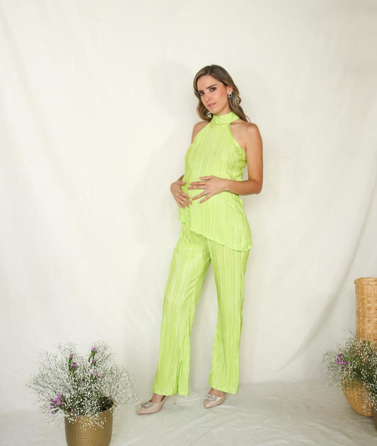 Conjunto de maternidad Martha, verde limón corrugado