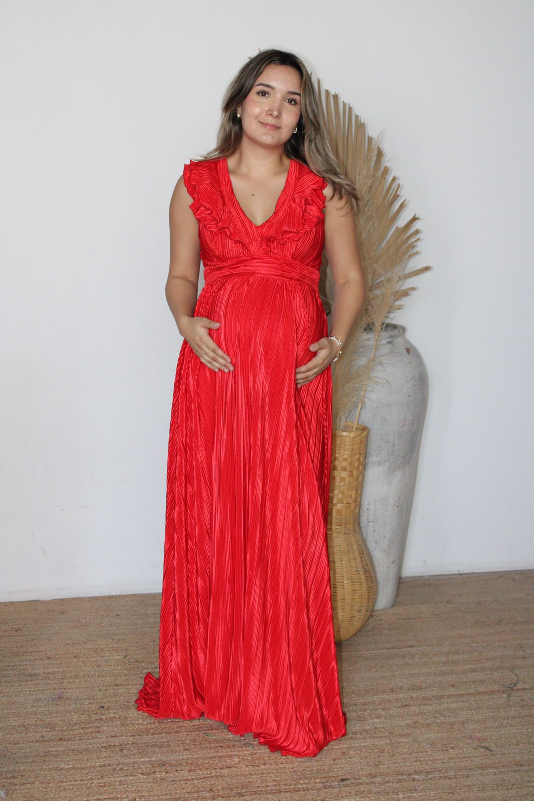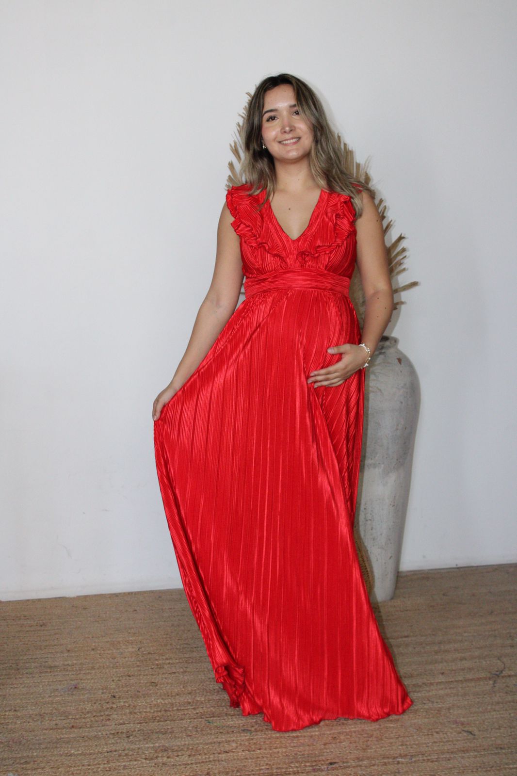 Vestido Xiomara de maternidad y lactancia rojo corrugado