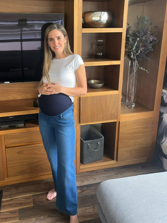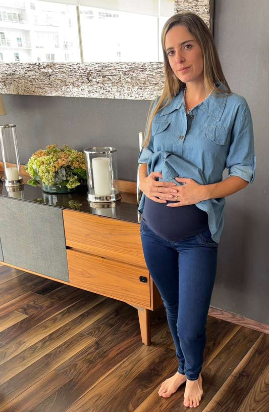 Pantalones de maternidad mezclilla azul marino súper strech corte recto