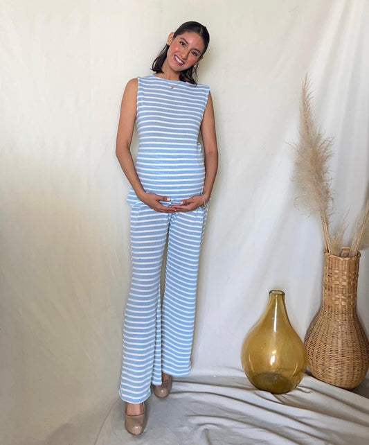 Conjunto de maternidad Cinthya, azul rayas con ivory