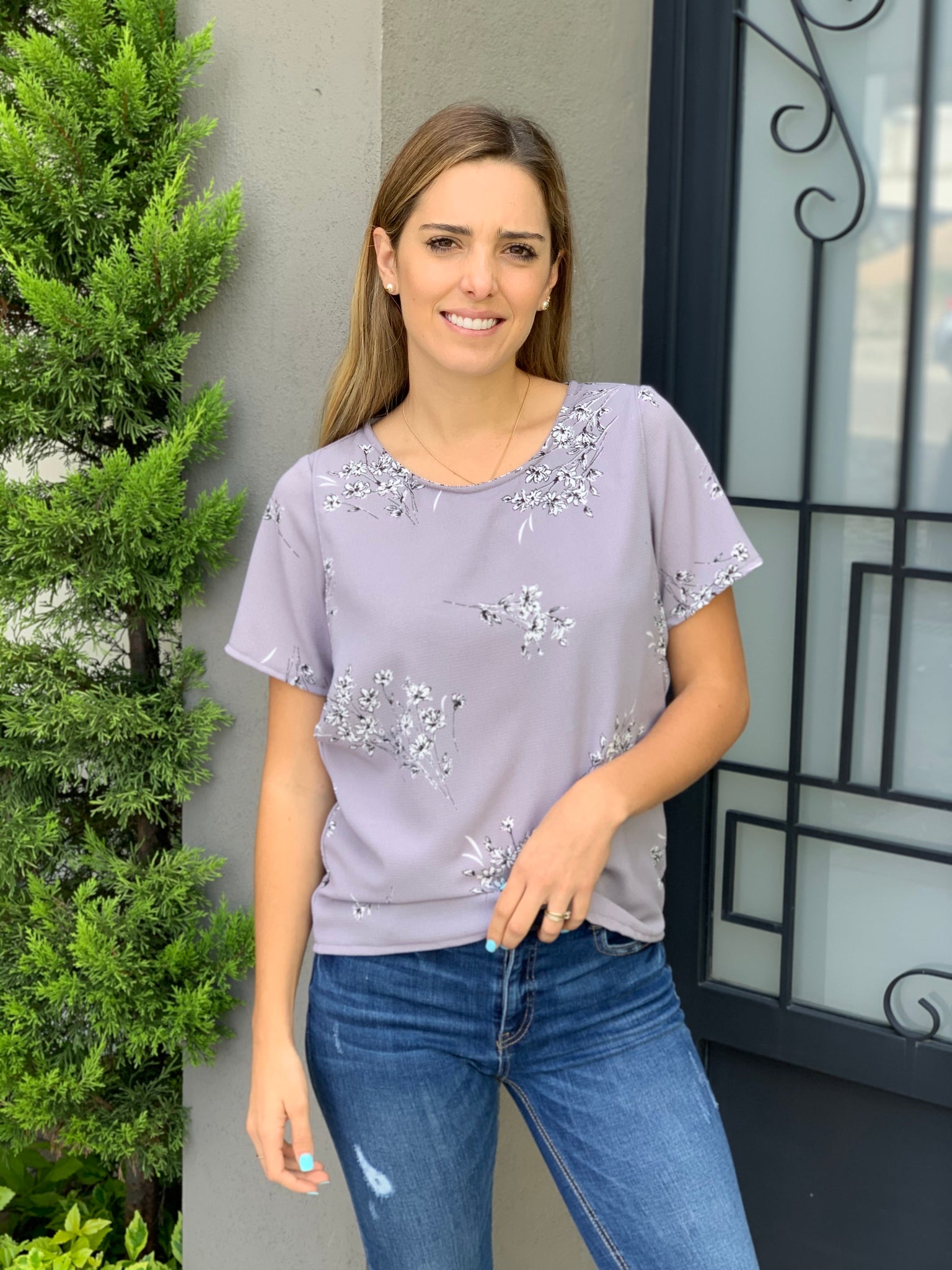 Discreet short-sleeved blouse made of light and fresh fabric, it has two openings on the sides in the chest area to move the fabric easily and breastfeed your baby.