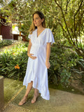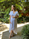 Short short-sleeved dress, made in a light and fresh fabric, with a ribbon under the chest to fit the body.
