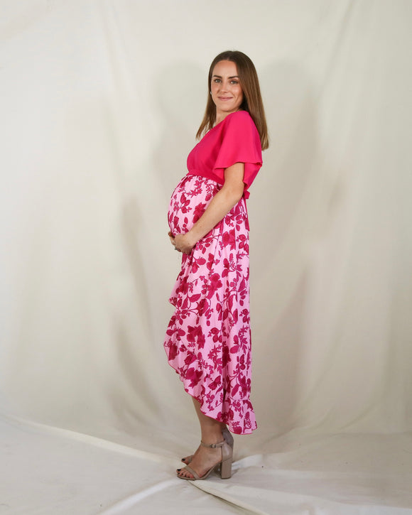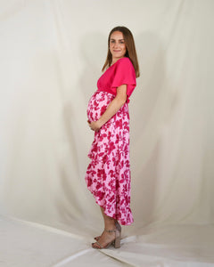 Vestido de Maternidad, Love Carlota rosa flores rosas