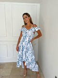 Short-sleeved dress, short in the front and long in the back, made of light and fresh fabric, very comfortable to wear with or without a tummy.