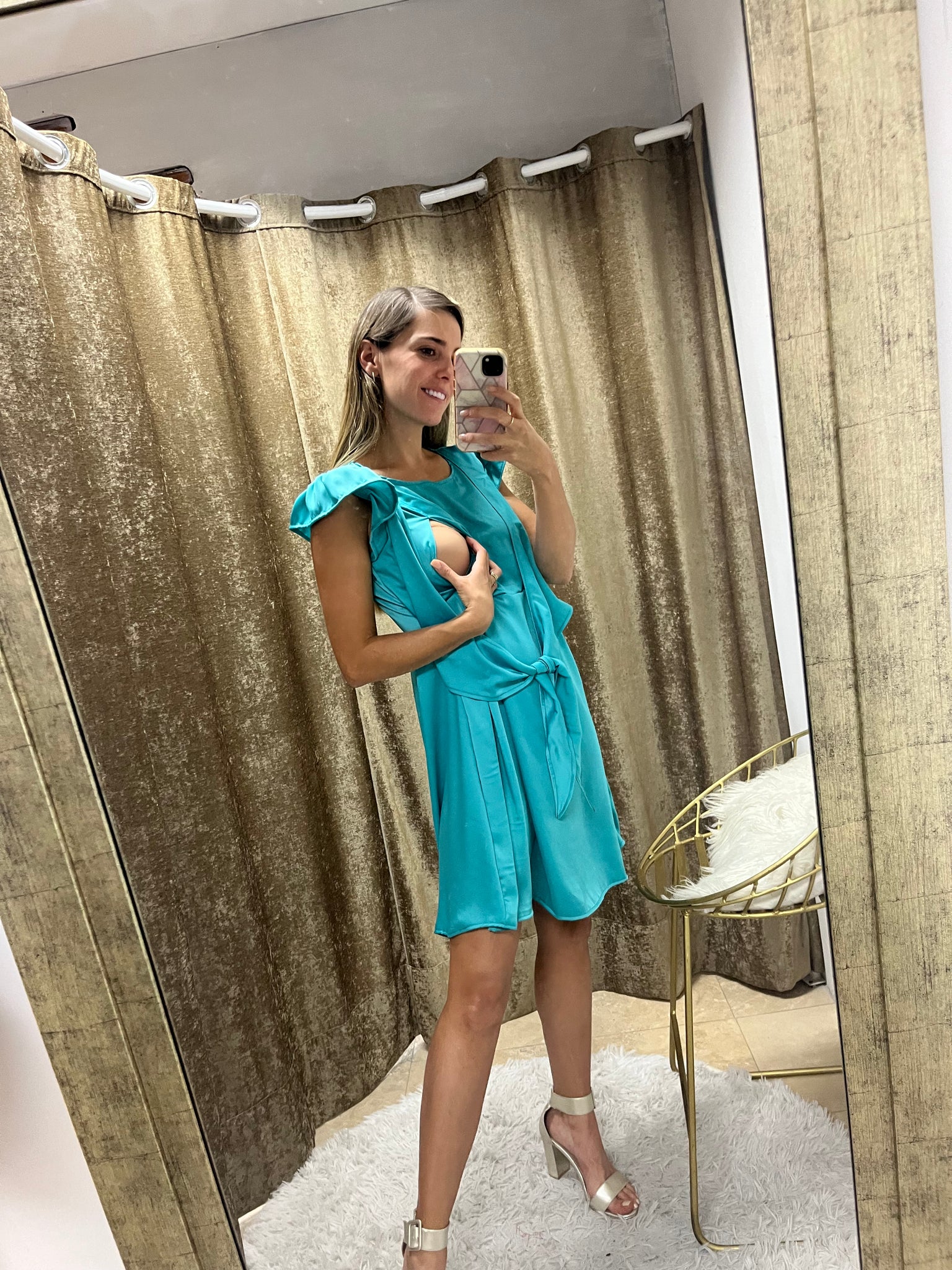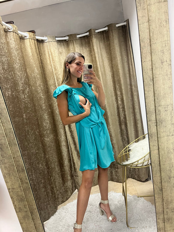 Vestido maternidad y lactancia Romina Turquesa mangas andys