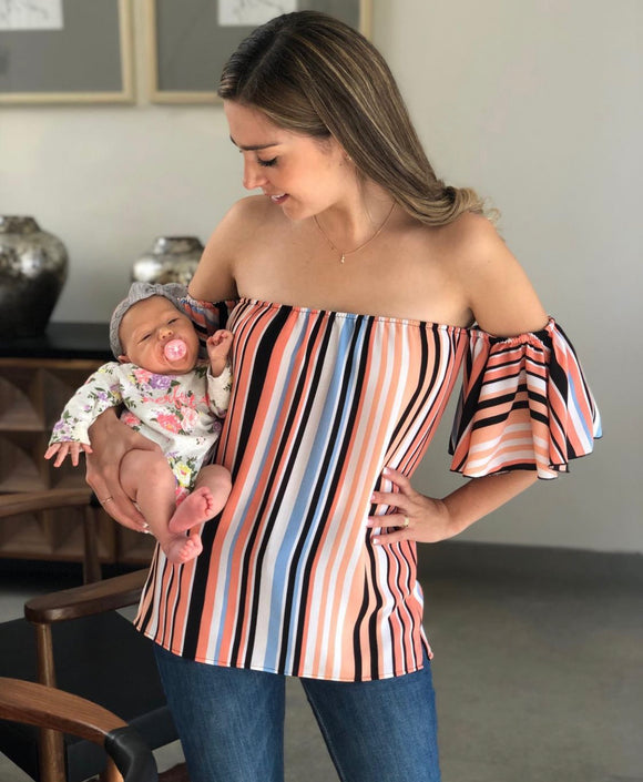 Blusa elaborada en tela ligera y fresca, cuenta con resorte en la zona del pecho para mover la tela fácilmente y amamantar a tu bebe.