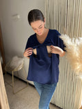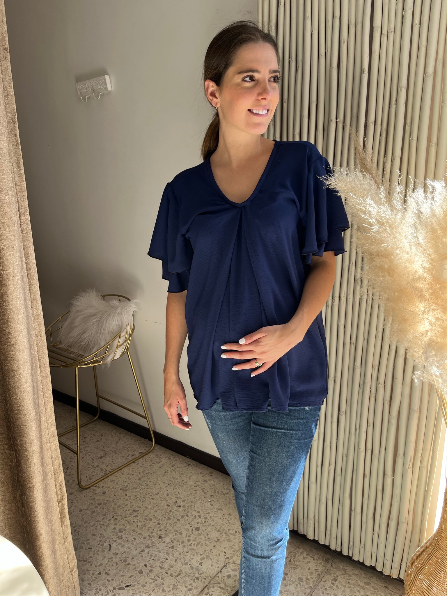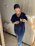 Blusa que cuenta con una abertura discreta en la zona del pecho para mover la tela fácilmente y amamantar a tu bebe.