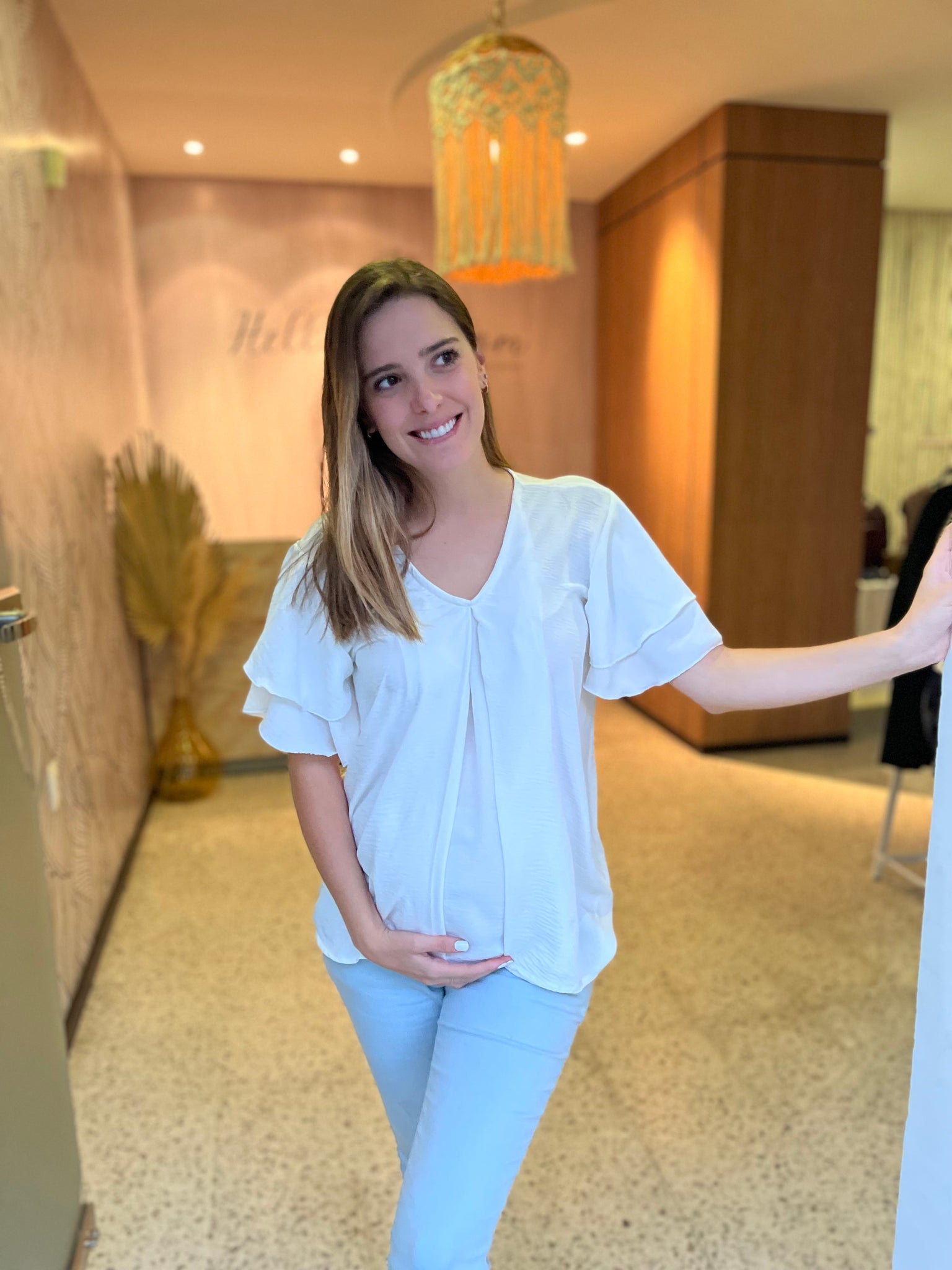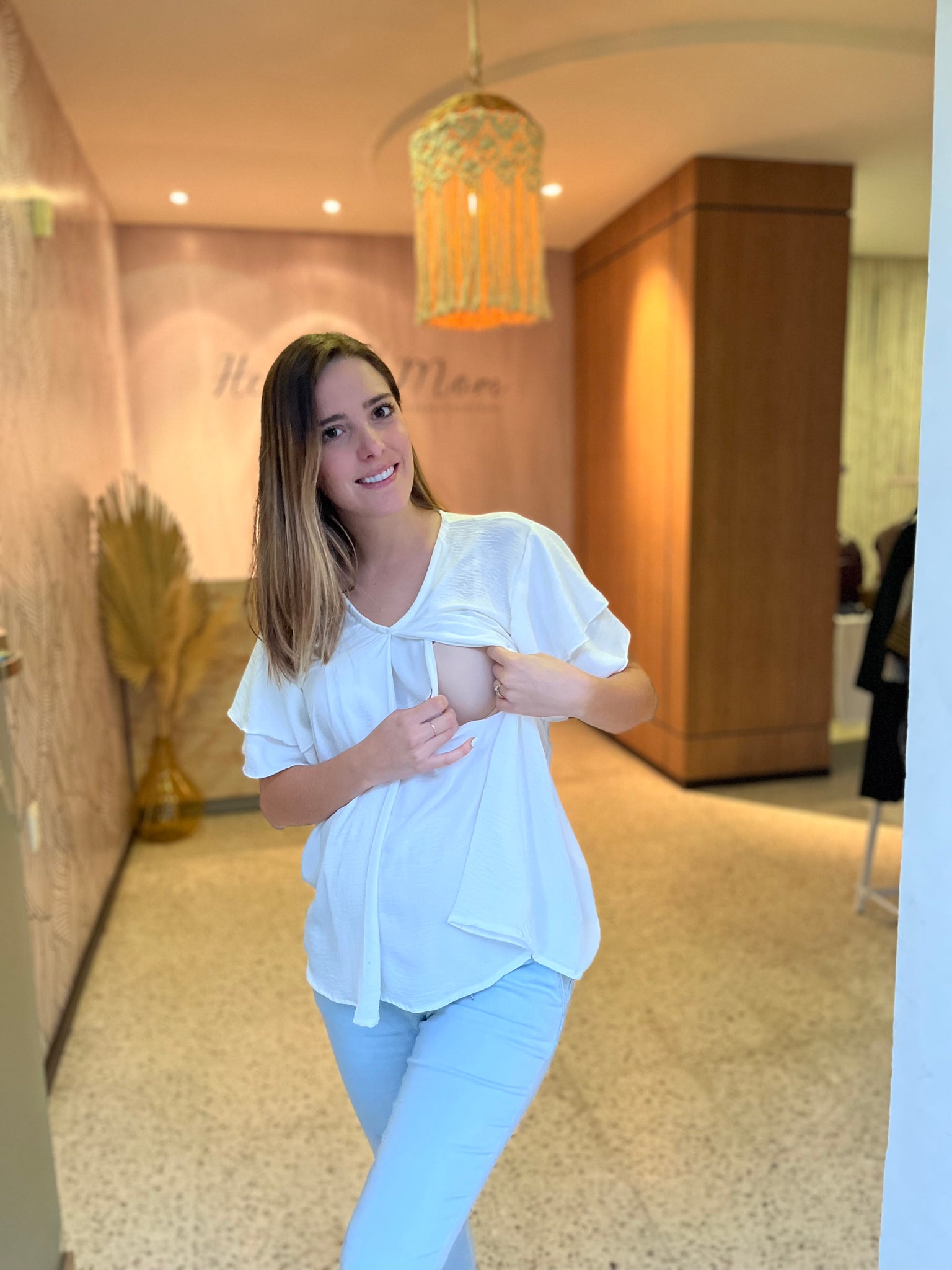 Blusa que cuenta con una abertura discreta en la zona del pecho para mover la tela fácilmente y amamantar a tu bebe.
