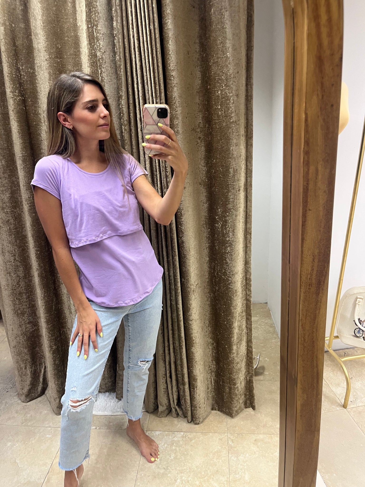 Blusa de maternidad y lactancia algodón lila