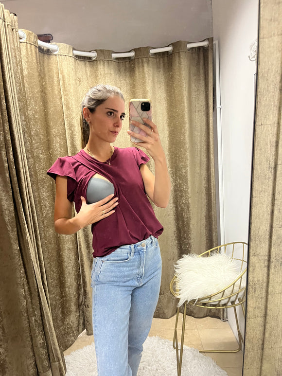Blusa elaborada en tela ligera, cuenta con dos aberturas a los costados en la zona del pecho para mover la tela fácilmente y amamantar a tu bebe.