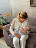 Blusa elaborada en tela ligera y fresca, cuenta con dos aberturas a los costados en la zona del pecho para mover la tela fácilmente y amamantar a tu bebe.