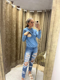 Suéter/blusa de lactancia, gloria azul rayitas
