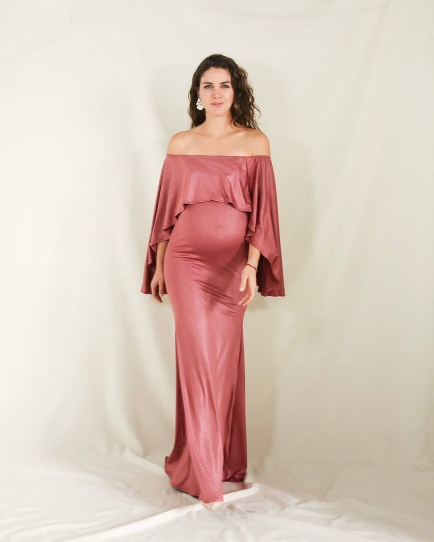 Vestido de maternidad Amparo, rosa fuerte brilloso licra
