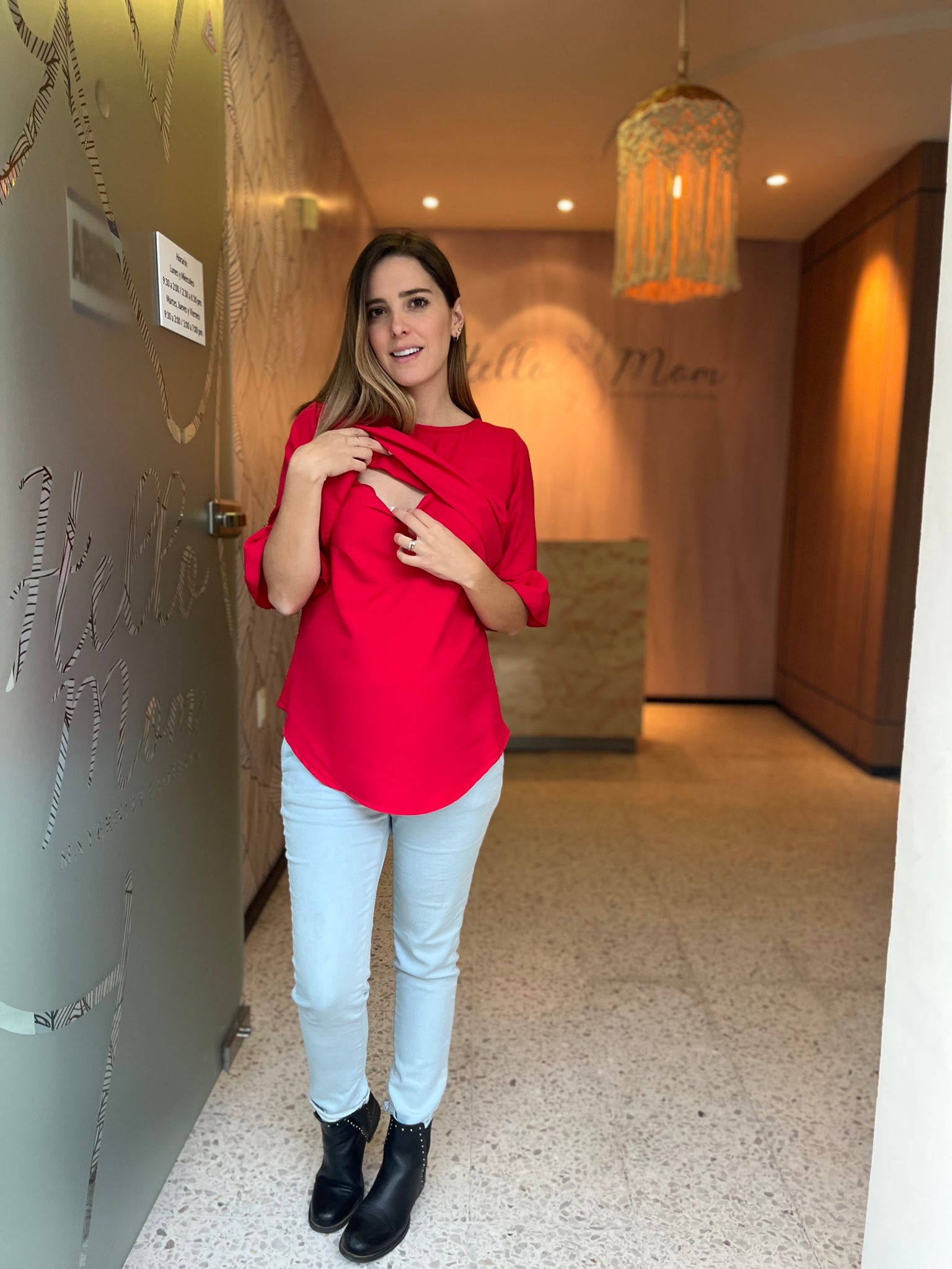Hermosa blusa de tela fresca y ligera, que se adapta a lactancia.