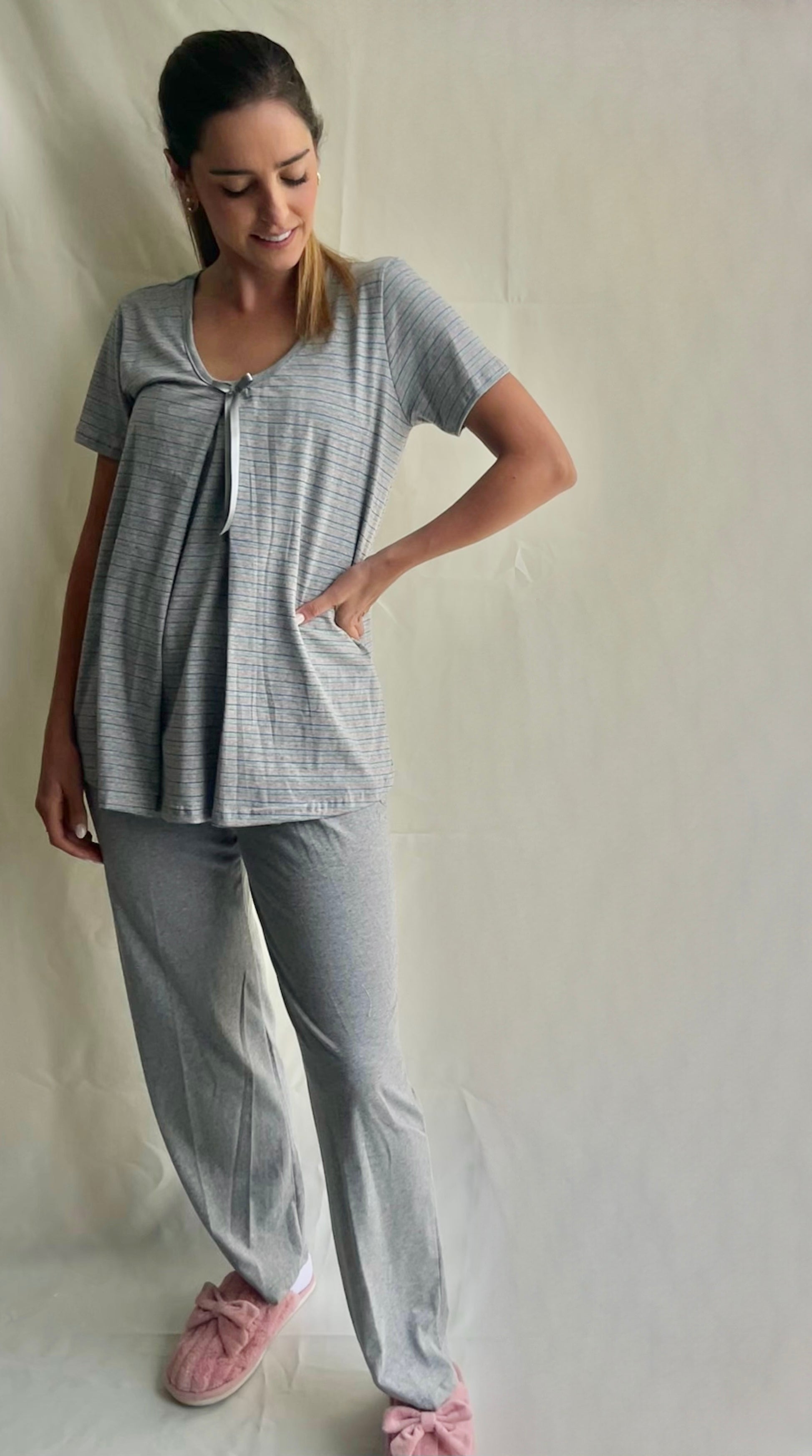 Cómoda pijama para el embarazo. De tela fresca y ligera. Se adapta tanto como a lactancia como a maternidad.