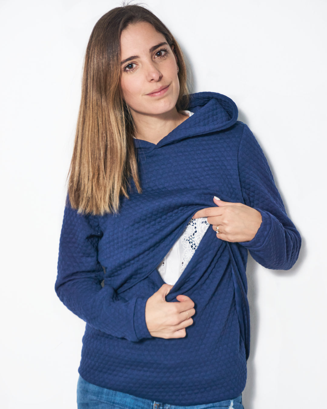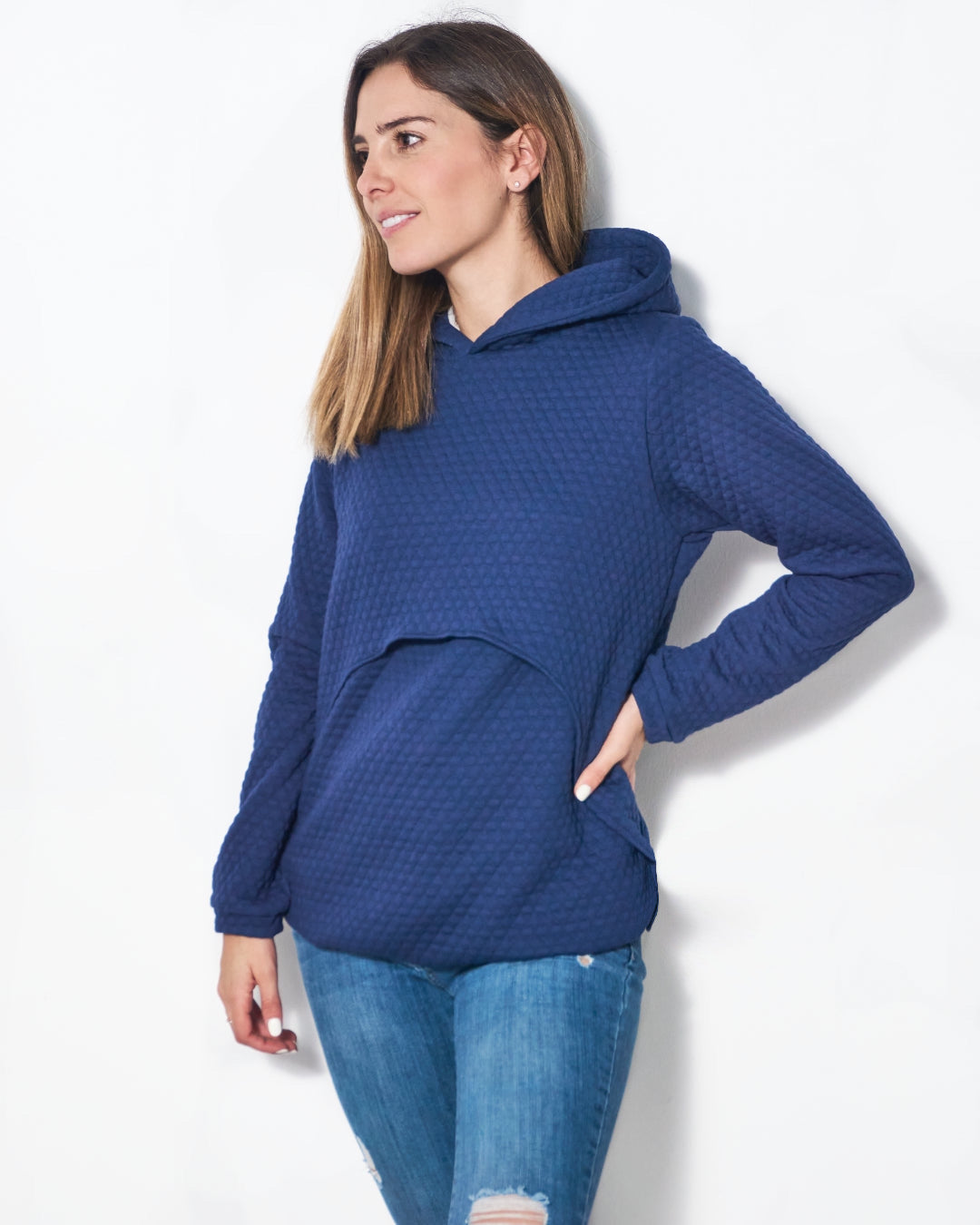 Sudadera de lactancia strech calientita, cuenta con abertura debajo del pecho para mover la tela fácilmente y amamantar a tu bebe. Funciona en maternidad y lactancia.