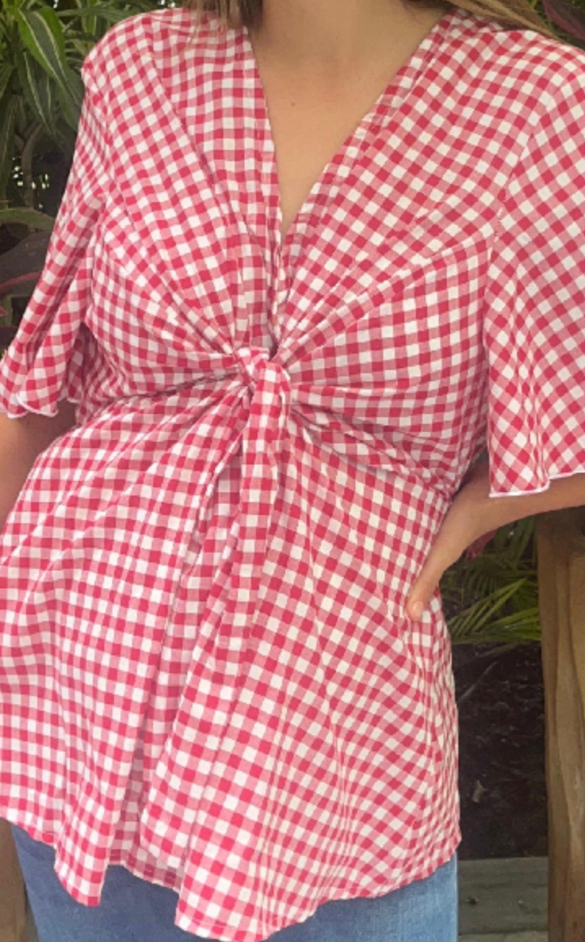 Tela poliéster cuadros rojos
