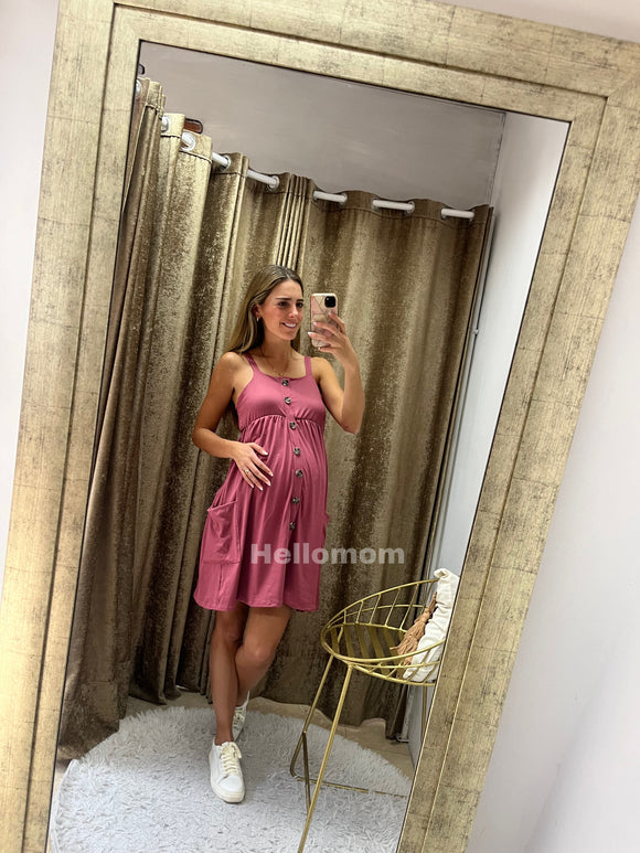 Vestido de maternidad algodón con botones y bolsillos rosa