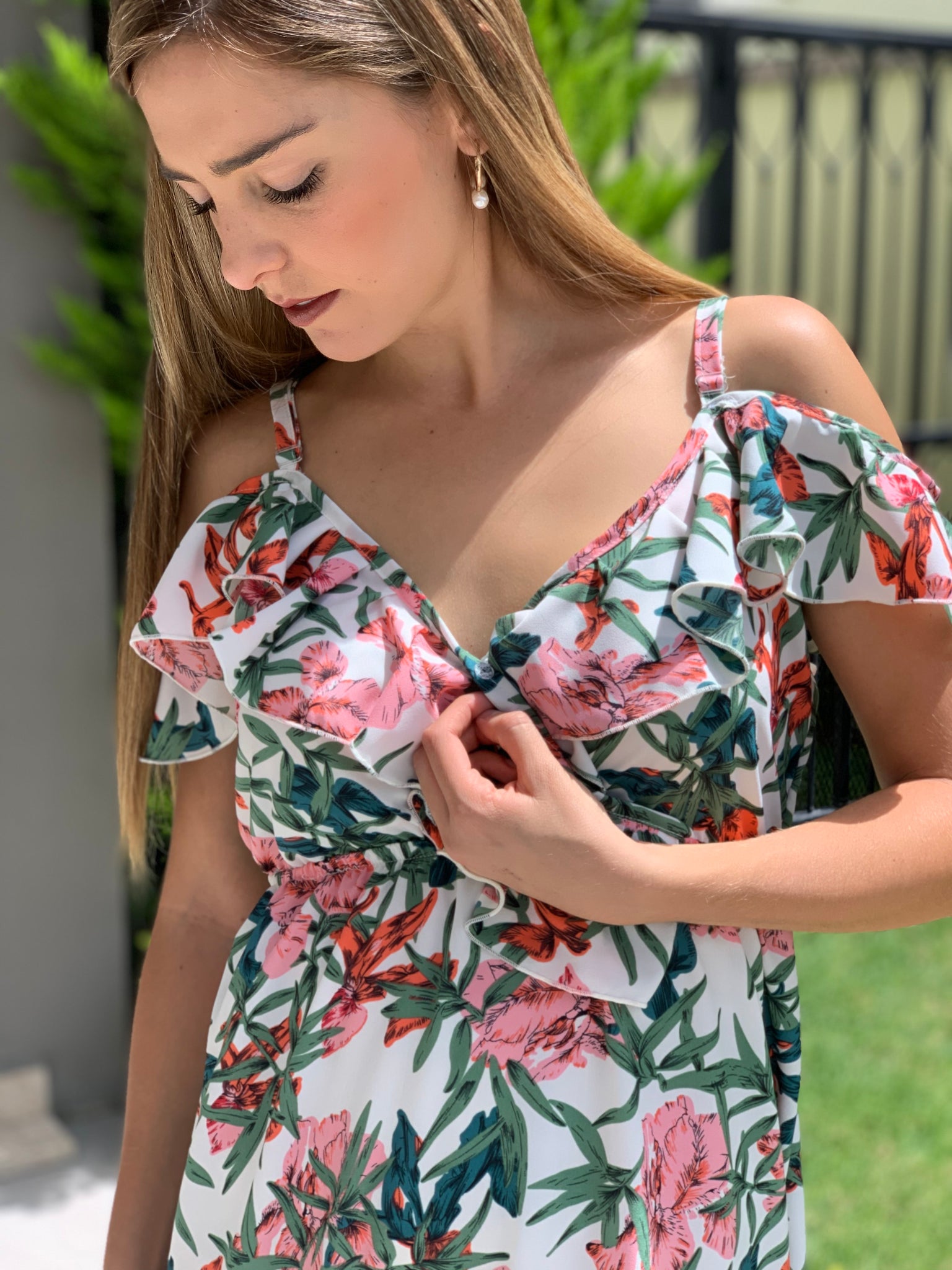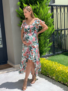 Vestido de manga corta, corto de enfrente y largo de atrás, elaborado en tela ligera y fresca, muy cómodo para usar con o sin pancita.