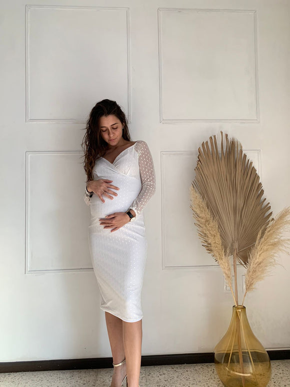 Vestido de maternidad RittaYuridia, blanco bolitas