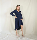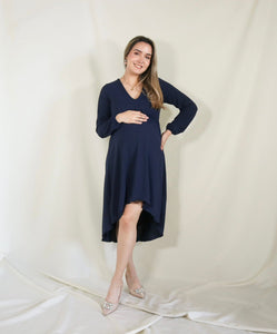 Vestido corto de manga larga, elaborado en tela gruesa y con spandex.