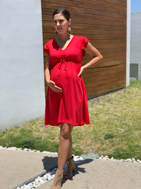Vestido corto de manga larga, elaborado en tela ligera y fresca, con listón bajo el pecho para ajustarse al cuerpo.