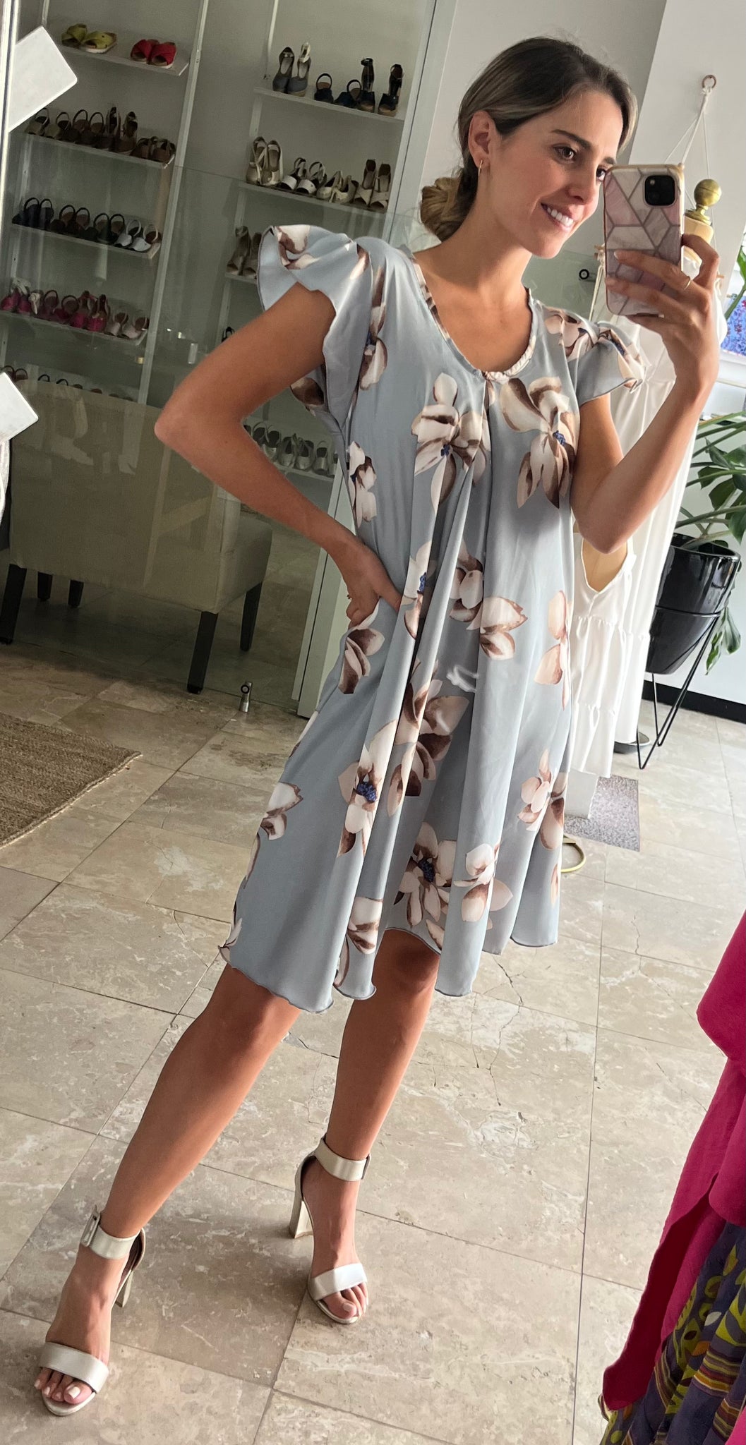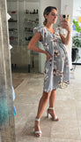 Vestido discreto con manga corta elaborada en tela ligera, cuenta con dos aberturas a los costados en la zona del pecho para mover la tela fácilmente y amamantar a tu bebe.