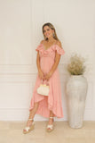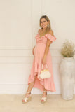 Vestido de manga corta, corto de enfrente y largo de atrás, elaborado en tela ligera y fresca, muy cómodo para usar con o sin pancita.
