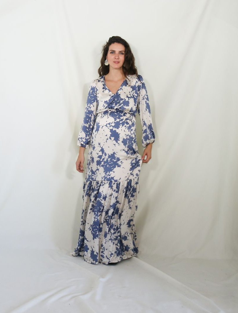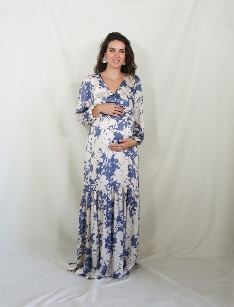 Vestido largo de manga corta, elaborado en tela ligera y fresca.