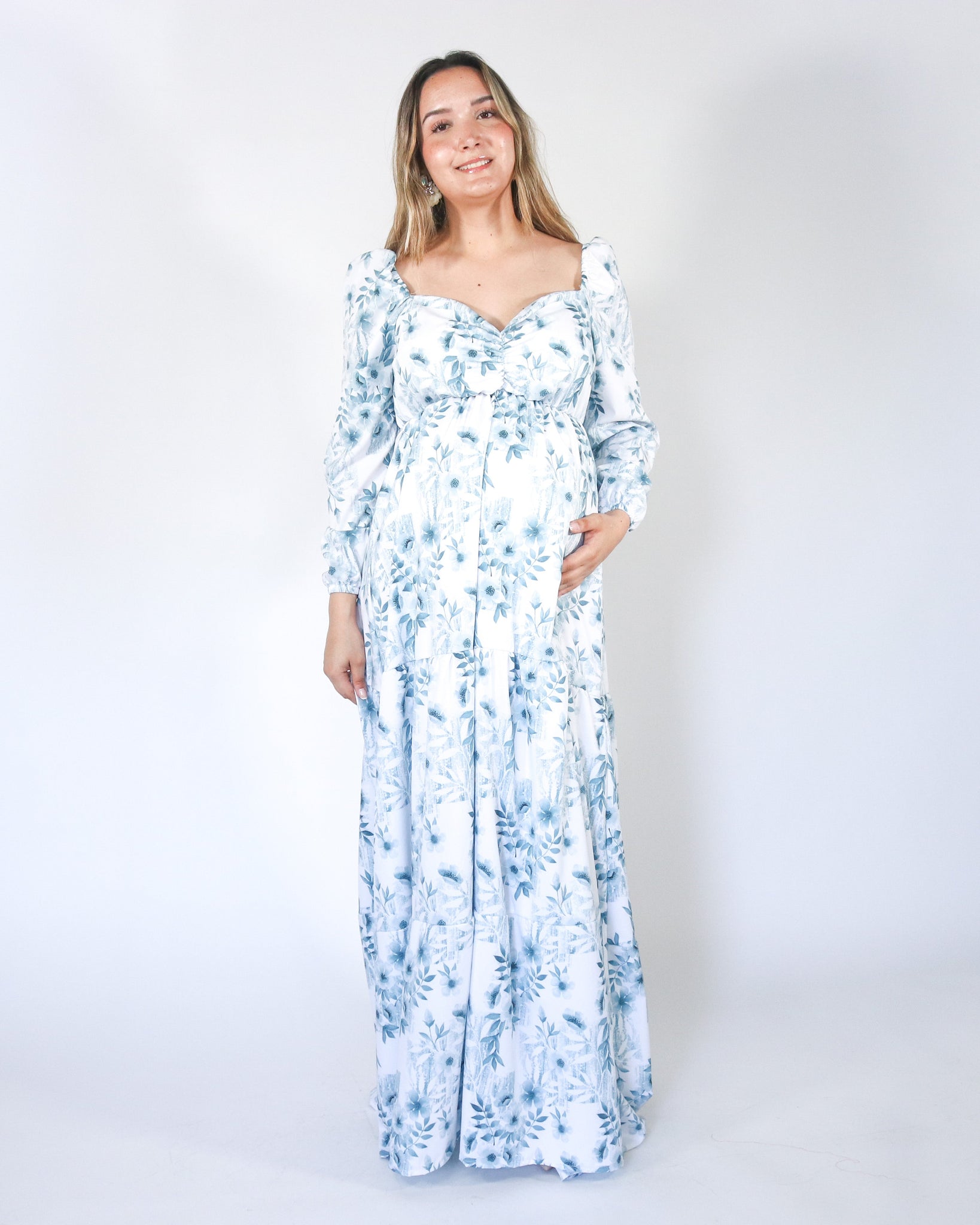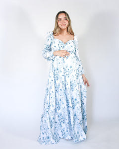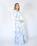 Vestido maternidad Priscila largo, blanco con azul