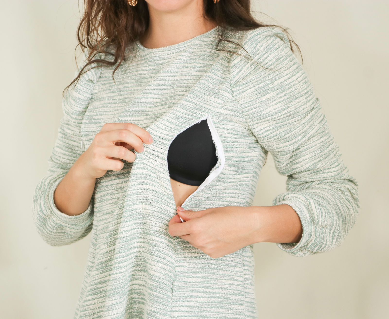 Lleva cierres ocultos de lactancia.